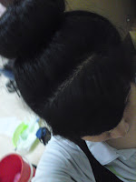 Step 3 : After pressing your hair hard between the band's upper and bottom surface, pull your hair up until the bottom most of your hair as shown in the diagram (You understand right???)
